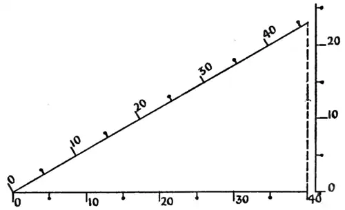 § 116. The n-square law and Partial Concentration. In § 42 it was shown that if the whole of the "combined" fleet of 46 ships had been concentrated upon the British 40 ships the annihilation of the latter would have been complete, leaving the combined fleet victors with the equivalent of 23 whole ships to the good; this is now represented graphically in Fig. 18. By inadvertence this was referred to (quoting Villeneuve) as "the usage of former days." This is not strictly accurate, at least it requires qualification.