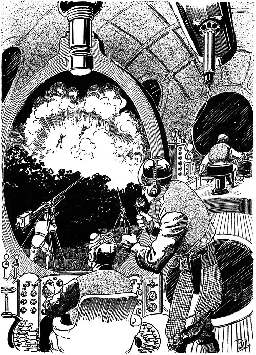 Seen upon the ultroscope viewplate, the battle looked as though it were being fought in daylight, perhaps on a cloudy day, while the explosions of the rockets appeared as flashes of extra brilliance.