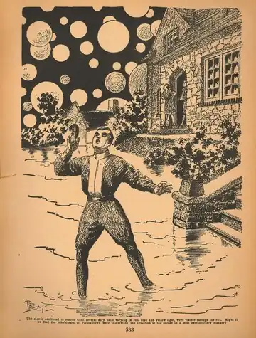 The clouds continued to scatter until several fiery balls varying in red, blue and yellow light, were visible through the rift. Might it be that the inhabitants of Pleasantown were celebrating the cessation of the deluge in a most extraordinary manner?