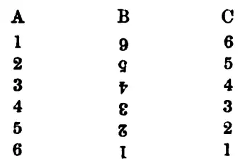 Let the line A be a string of six beads, each of which is a minimum visibile, or smallest point from which a cone of rays can come. Now, the ordinary optical doctrine, as we understand it, is, that this string of beads A falls upon the retina in an image in the form of the row of figures B; that is to say, in an image in which the bead 1 is thrown with its head downwards on the retina, and all the other beads in the same way with their heads downwards. Now, on the contrary, it appears to us demonstrable, that the beads A must fall upon the retina in an image in the form of the row of figures C; that is to say, in an image in which each particular bead or minimum lies with its head upwards upon the retina. In the annexed scheme our meaning, and the difference between the two views, are made perfectly plain; and it is evident, that if the object were reduced to only one minimum—the bead 2, for instance—there would be no inversion, but a perfectly erect image of it thrown upon the retina.