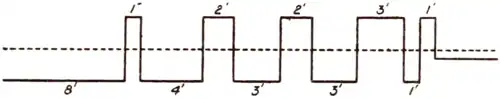 The curve given below represents approximately the results of the experiment. During certain periods the substance became so nearly neutral that it was difficult to interpret whether the substance was positive or negative. The lower halves of the curve represent the negative and the upper halves the positive states, and the corresponding numbers represent, in minutes, the duration of these states.