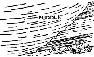 between the two sides of the puddle trench in figs. 8 or 9 until the clay