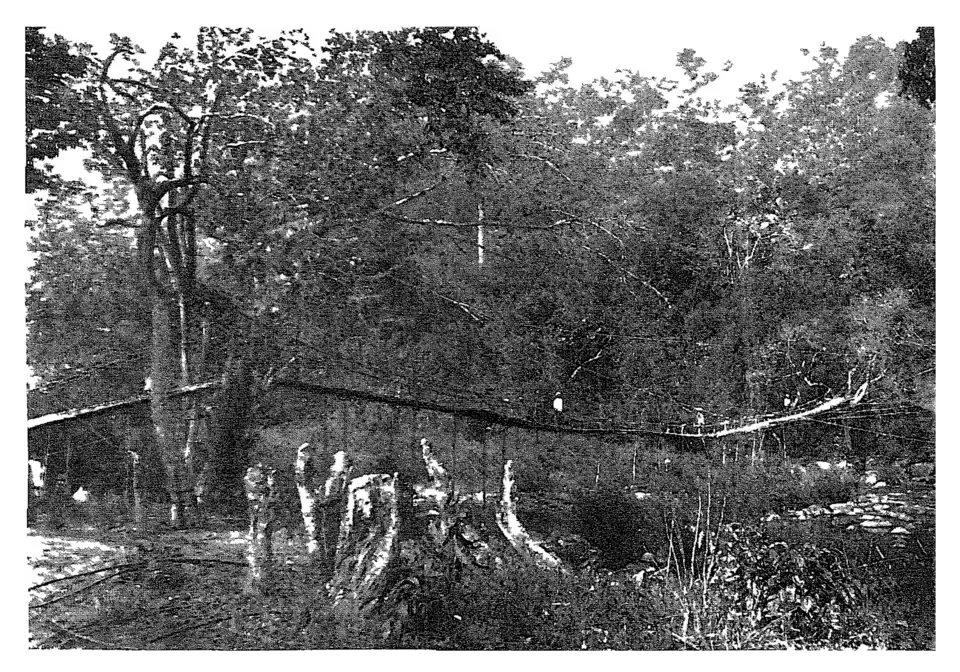 FIG. 6.—A CANE BRIDGE IN THE KHASIA HILLS, IN THE DRY SEASON.