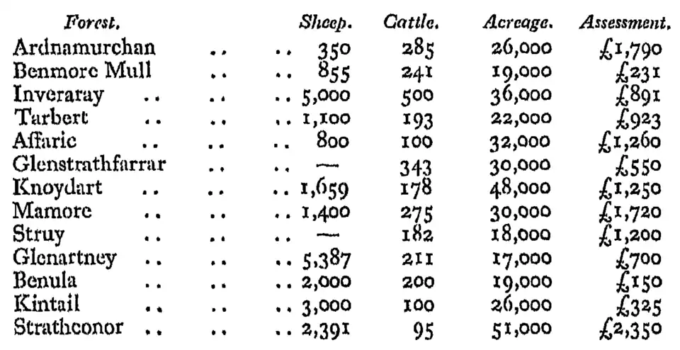 These numbers will doubtless seem to those who have no experience of the climate of the deer forest from November till May very trifling, but the very low rateable value of these forests is the best indication of how small is the agricultural value of the land, and how large are the outlays which have been made in the past by owners to fit them for grazing or sporting tenancies. The only case in which the grazing value of a forest seems to have been really utilised to its full extent is the Earl of Ancaster's forest of Glenartney, which on account of its low elevation, excellent grazing, and isolation from other door forests, is more like a large enclosed deer park, and such stalking as it affords would hardly attract people who know what real deer-stalking is.