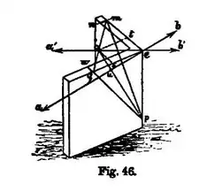 . Join , which is in the same vertical plane, and also in the plane of the fissures or fractures, , , and through the point of the quoin intersecting , draw perpendicular to ; is then the path of the subabnormal wave, emergent in the direction to . This is tantamount to finding the resultant of all the parallel forces that resisted fracture, and of course assumes, that the masonry fractures equally readily everywhere.