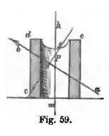 such a building, its effects are the same. The distinction of normal and abnormal wave does not exist as respects them; and unless the angle of emergence of the wave be extreme, or nearly vertical, the lines of fracture are the same in every case, viz, vertically through the axis and transverse to the line of shock. This arises from the fact that the area of fracture, and therefore the total resistance, , due to it, augment rapidly as the angle of its obliquity with the vertical, through the cylindrical walls increases. So that although the direct tendency of the wave is to throw off a cylindric ungula, (Fig. 59), by a fracture