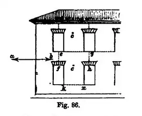 wave; whenever the wall is pierced by one or several rectangular or other apertures, it may be viewed as divided into different segments such as that , , , each having a separate moment of stress of its own, and giving rise to a separate dynamic couple, the extremity of one arm being in the centre of gravity, , the other at the base and junction with the similar adjoining segments, the ten-