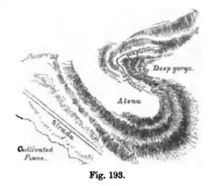 A second small gorge, with deep and precipitous sides, runs in an east and west direction behind Atena, and falls