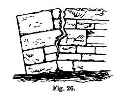 revolution, thus (Fig. 26); it nevertheless almost invariably happens that the line of fracture, whether in stonework or brickwork, follows down or along a line of joints, producing a jagged or serrated fissure, the jaws or serrations depending upon the length of bed of each block or brick, and the depth of the courses.