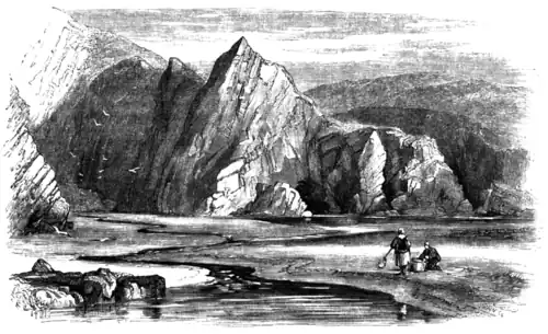 with reasonable caution not to be washed off by an unusually high wave, an accident which has happened. It was near there that the unfortunate Express mail-steamer was lost on a fine morning, the 20th of September, 1859. It was this ill-omened vessel which carried over Louis Philippe to Newhaven, in 1848, in a gale of wind. Beyond there is the beautiful seclusion of St. Brelade’s bay, with the oldest church of the island in one corner of it, and beyond the next point and Noirmont, the still more beautiful, and still more secluded, Portelet bay. At Noirmont point, the coast beauty ceases, and the view of St. Aubin’s bay closes the exhibition. On its further horn appears, looking well in the distance, the town of
