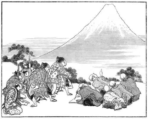 Travellers. First view of Fusi-hama. (Fac-simile.)