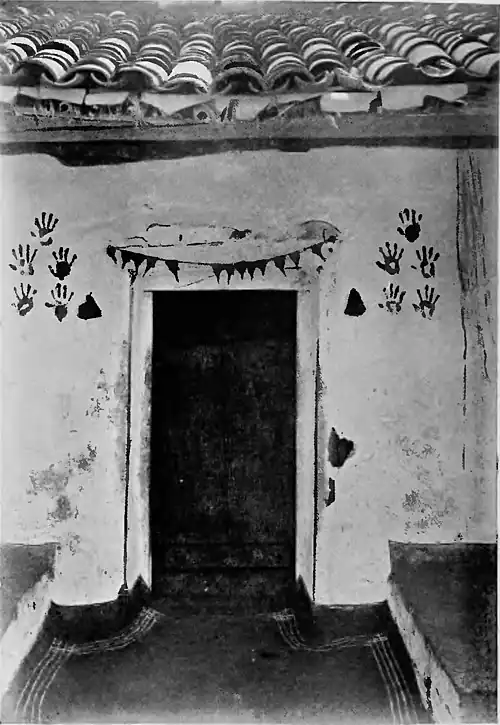 IMPRESSIONS OF HAND ON WALL OF HOUSE.
