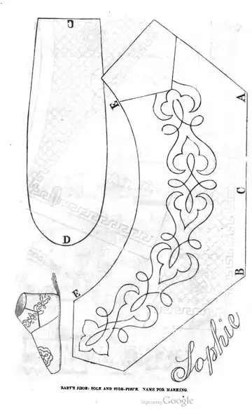 BABY'S SHOE: SOLE AND SIDE-PIECE. NAME FOR MARKING.