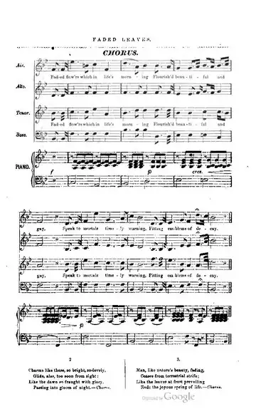 Man, like nature's beauty, fading, Ceases from terrestrial strife ; Like the leaves at frost prevailing Ends the joyous spring of life. - Chorus.