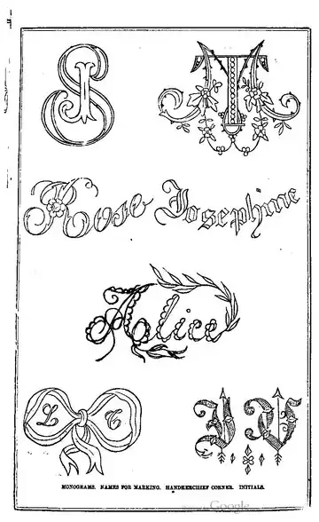 MONOGRAMS. NAMES FOR MARKING. HANDKERCHIEF CORNER. INITIALS.