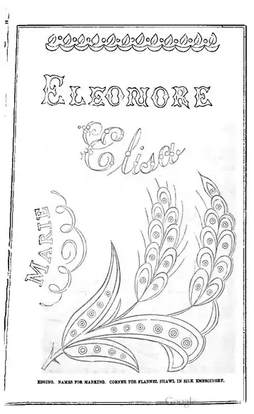 EDGING. NAMES FOR MARKING. CORNER FOR FLANNEL SHAWL IN SILK EMBROIDERY.