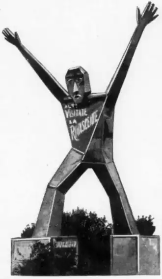 One of the Concrete Bridges on the Bergamo Branch of the "Autostrada," and a Futuristic "Billboard" Figure: It Attracts Attention Even When Motorists Drive at High Speed