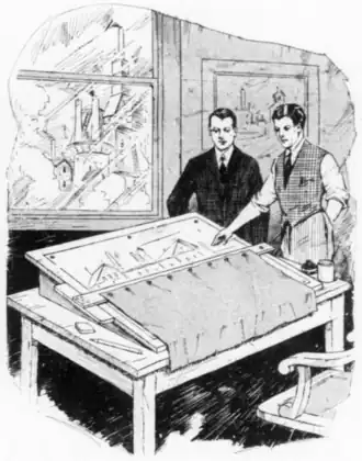 Draftsmen making sketches and pencil plans will find that a cloth fastened to the T-square with thumbtacks, as shown in the illustration, is of considerable service in protecting drawings from being soiled. The cloth does not interfere with the work and covers the section of the drawing not being worked on, permitting the draftsman to rest his arms on it without any risk of smudging the work.