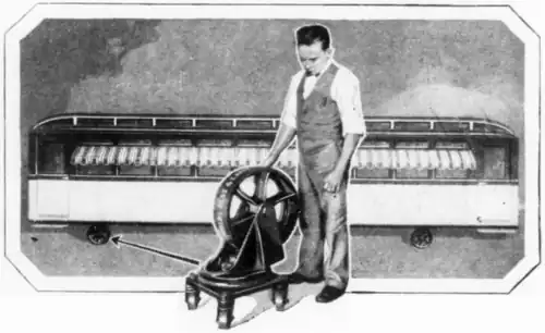What are said to be the largest casters ever constructed have been made for a sixty-foot lunch car to simplify the task of getting it in and out of difficult places at carnivals, race tracks, fairs, and the like. The units each weigh 425 pounds, are more than twenty-five inches high and the wheel itself is twenty inches in diameter with a six-inch tread. Roller bearings facilitate moving, and there is a special locking device to keep the car steady.