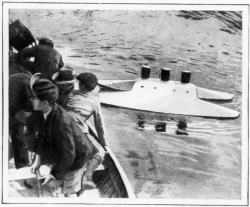 Tests with a small model furnished engineers data for the construction of a hydroglider to cross the Atlantic from France. The craft was designed to be steered by speeding up or slowing down one of the three motors instead of by the usual guiding gear. Each engine develops 500 horsepower. The ship is supported on the water by two pontoons, each more than seventy feet long.