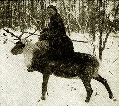 Riding a reindeer. to protect the fawns from the attacks of wolves and dogs. At the end of their apprenticeship, the herders have about fifty deer, which, with the