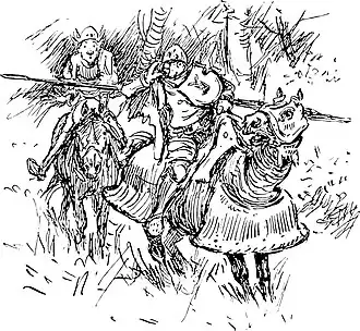 And smiter of Saracen bones, Was Sir Christopher Jenkinson Jones. Now “Chris,” as his intimates called him for short, (If very familiar, “Chrissie”), Considered the sportiest game of all sport Was tackling wild monsters of every sort, Which kept him most hustlingly busy; For dragons, and griffins, and hippogriffs grim, Were thicker than flies in that region; They carried off people, fat, medium, and slim, To forest, and mountain, and cavern-holes dim, In numbers amounting to legion. And roused by their captives’ loud groans, Was Sir Christopher Jenkinson Jones. |