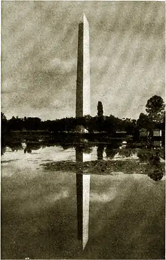 The towering Washington monument, solid as it is, cannot resist the heat of the sun, poured on its