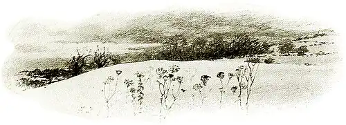 The wild carrot grows in profusion all around, and we must stop and look at a plant. The feathery leaves, almost the prettiest part of the plant, grow in a bunch upon the sand and from them rise the rough green stalks. How delicate the flowers are! The little brown speck in the center of each flower seems to accentuate the delicacy, and a pleasant carroty odor lingers around the plant, and grows stronger as we break the stems.