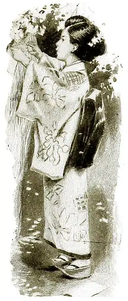 Japan’s Blossom-time. is the great holiday of all the year in China, when everybody hangs out flags and colored lanterns and sets off fire-crackers, (We borrowed our custom of fire-crackers for the Fourth of July from Chinese New Year’s.) All the people put on their very best clothes, and the children the best of all, jackets and trousers of bright blue or green or yellow or purple, the boy’s and the girl’s so much alike that you can only tell them apart by their hair, The boy’s, of course, is braided in a pigtail, and the girl’s is done up on her head with silver pins, or, if she ’s a very grand little girl, with gold or jade. Thus decked out, the children go walking with their proud papas and mamas, and often go to the theater, which is a rare treat for them.