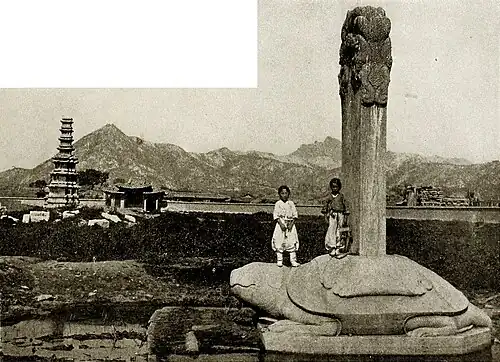 In Korea the little folks were by no means so prim. In that country everybody wears white clothes, but no one seems to say to the children, “Now, mind, don’t play in the dirt." Nearly everybody is poor in Korea, and so the children look poor and out-at-elbows. When we were taking a picture of an old, old monument inscribed with the history of a battle so long ago that the letters cut in the hard marble are almost worn away, two children came racing across the field to get into the photograph. Please don’t ask, “Boys or girls?” That ’s always such a hard question to answer in the East.
