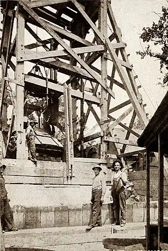 splashed into the air pocket, but when the air was compressed under it, and squeezed up between the car floor and the walls of the pocket, it would retard the car to such an extent that it would settle down to the ground floor without a serious jar.”