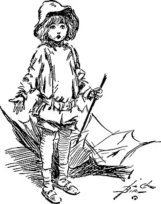 We all ran after it like mad, Tom and me, and Jack and Ella, When the old thing stopped, and, crash! Every one of us went smash Right on top of that umbrella! |