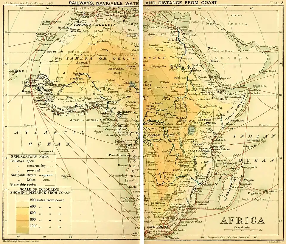 AFRICA: RAILWAYS, NAVIGABLE WATERS, AND DISTANCE FROM COAST