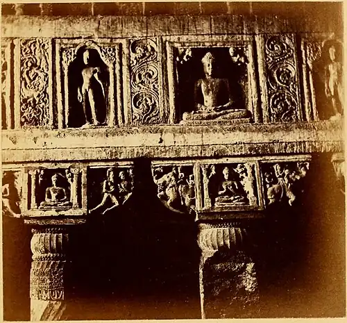 THIS and the three following views represent four different portions of the triforium belt of the Cave No. 19, and form as rich a piece of sculptured decoration as is to be found in any Buddhist cave in India, though many may be purer and in better taste.