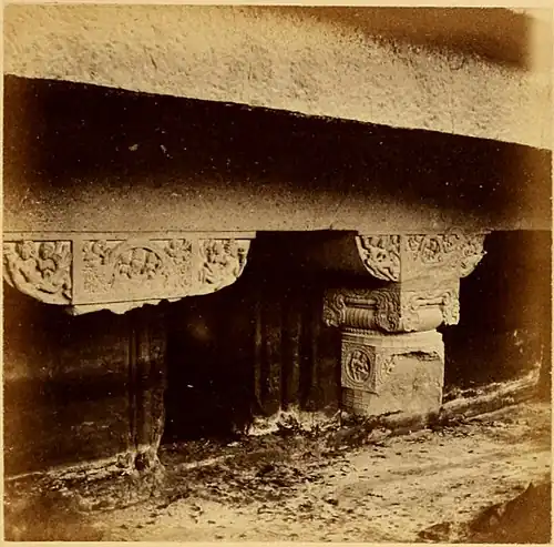 In the pillars of the verandah we have another instance of the falling-leaf ornament which became so fashionable at Delhi and elsewhere, in the eleventh and twelfth centuries, and which occurs also in the Choultrie to Cave No. 19, which may probably be of the same age.