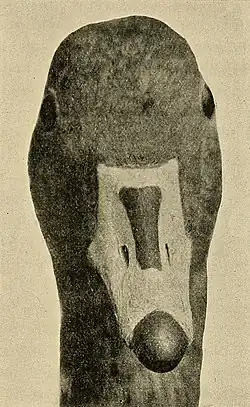 and flanks drab, margined with paler, the flanks gradually becoming a rich seal-brown, broadly margined with white. The middle of the under parts are very pale whitish drab, gradually becoming white on abdomen and under tail-coverts. On the middle of the breast there is a black feather, with several others showing the dark pigment being thrown into them, while at the roots of most of the feathers on the sternum a dark colouring matter is making its appearance.