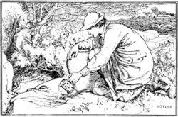 The next morning, when he passed by the dry little hollow which, the day before, had been a milky lake, he thought of the adder, and how dull it must feel after its delightful meal of yesterday. So he looked at his jar and then at the hollow, and then at the jar again. Finally he stooped down, and poured out a little milk, and walked quickly away. When be had gone a few steps, he glanced round cautiously, and saw the adder in the act of gliding out from under a bush and making straight for the milk.
