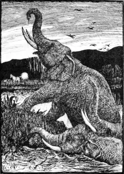 BAKER SHOOTING THE ELEPHANTS AT THE ISLAND