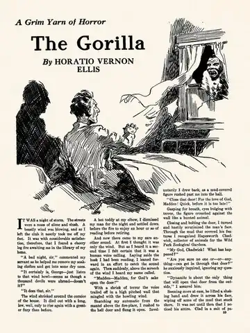 It was a night of storm. The streets were a mass of slime and slush. A beastly wind was blowing, and as I left the club it nearly took me off my feet. It was with considerable satisfaction, therefore, that I found a cheery log fire awaiting me in the library of my home.