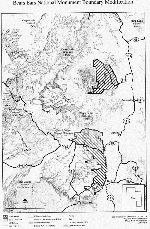WHEREAS, Proclamation 9558 of December 28, 2016, designated the Bears Ears National Monument in the State of Utah and reserved approximately 1.35 million acres of Federal lands for the care and management of the Bears Ears buttes and other objects of historic and scientific interest identified therein; and