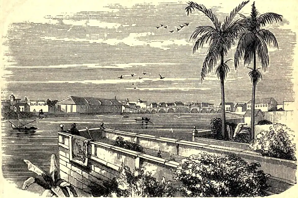 MANILA, a city, capital of the island of Luzon, and of the whole Philippine archipelago, near the mouth of the Rio Pasig, which empties into the bay of Manila; lat. 14° 36' N., lon. 121° E.; pop. (including the suburbs) from 140,000 to 150,000, of whom the Spaniards and Creoles are about one tenth, the remainder being native Tagalas, mestizos, and Chinese. Most of the Chinese are engaged in commerce, and but few in agriculture. The city is divided by the river into two sections, Manila proper and Binondo. The former, which is the military town, is surrounded by lofty walls, and communicates with Binondo by a fine stone bridge 511 ft. long, with 10 arches, first built in 1630, but rebuilt in 1814. The situation of the town is beautiful. On one side is the bay, in a framework of forest-clad mountains declining gradually toward the shore; and on another a picturesque plain, where are the military parade ground and the fashionable promenades, crowded in the evening with showy equipages and gay equestrians and pedestrians. The aspect of Manila proper is somewhat dull and monotonous. The streets are perfectly straight, macadamized, and provided with ample granite sidewalks. The houses, which have in general a sort of palatial appearance, are of two stories, and built in a manner to resist the hurricanes and earthquakes so frequent here. The upper story, commonly occupied by the family, is encircled by a spacious gallery, from which the sun is excluded by large sliding panels with mother-of-pearl panes, sufficiently transparent to admit light to the apartments. In this town are the cathedral and some other churches, with all the monasteries and convents, both of which are numerous; the governor's palace; the citadel, overlooking both towns; the courts of justice, custom house, barracks, arsenal, hospital, and other public buildings. Binondo, on the N. bank of the river, is much larger and more animated; but the streets are less regular and many still unpaved. Numerous canals, crowded with pirogues, gondolas, and other boats, intersect this suburb, in which reside the wealthy merchants, Spanish, English, Indian, Chinese, and mestizos. The newest and most elegant houses on the banks of the Pasig, though of unassuming exterior, are highly adorned within. Each house has a landing place from the river, and little bamboo huts to which the inhabitants repair several times a day for bathing. In other parts of the town there are sombre and massive structures interspersed with airy bamboo cottages perched on posts, in the midst of avenues of tropical trees, giving to the place an appearance at once Spanish and oriental. The only square worthy of remark in either town is the Plaza Mayor in Manila proper, some 300 ft. square, and embellished with a fine statue of Charles IV. of Spain, presented by Ferdinand VII. in 1824. The climate is intensely hot, but tolerably salubrious; hurricanes occur frequently, and heavy rains fall at short intervals, especially during the wet monsoons, which prevail five months out of the twelve. The temperature is equable, seldom rising above 99° F. or descending below 70°. Vessels of deep draught have to anchor at Cavité, about 7 m. distant; but the anchorage in the port of Manila is excellent for small vessels. Manila is by law the sole emporium of foreign trade with the Spanish East Indies. The chief articles of export are sugar, tobacco (exclusively to Great Britain and Spain, the latter receiving annually a state tribute out of the tobacco crop to the amount of $800,000), cigars, hemp, coffee, indigo, copper, and gums and other tropical products. The imports include cotton, linen, woollen, and silk fabrics, manufactured iron, wines, beer, &c. The total value of the exports for the year ending Sept. 30, 1872, was $18,679,770 19; of the imports, $2,557,227 42; the amount of duties paid on the latter was $284,406 31. The more important commercial relations are with Spain, Great Britain, the United States, France, Germany, China, Chili, and the Hawaiian islands. The tobacco manufacture, a government monopoly, employs 20,000 workers of both sexes. (For other manufactures, see Luzon, and Philippine Islands.) Educational establishments are numerous in Manila: there are the university of St. Thomas, with 500 students; that of St. John, with 250; a royal marine school (established in 1820), a commercial (1840), and a number of primary schools public and private.—Manila was founded by the Spaniards in 1571, on the site of a Malay town defended by stockades. Miguel Lopez de Legazpi, conqueror of the Philippines and founder of the city, was indefatigable in promoting its growth. He founded the cathedral, the metropolitan church of all Catholic Oceanica, and established a municipal organization, which was confirmed by Philip II. of Spain, and continues to be the form of municipal government in Manila. Chinese laborers and traders settled here in large numbers, and in time became very turbulent. In 1603 an insurrection took place, and 23,000 Chinese were massacred; notwithstanding which, the Chinese population in 1639 numbered in Manila about 30,000. The severity of imposts and religious persecution again led to insurrection, which terminated with the slaughter of about 25,000 Chinese, and the banishment of the remainder; but they soon again resorted to the city in large numbers, and assisted Admiral Cornish and Sir William Draper in the capture of it in 1762. The English expedition, composed of 2,300 Europeans and sepoys, which sailed from Madras, took the city by storm, after a siege of ten days. The governor and archbishop agreed to pay $5,000,000 to save the rich cargoes then lying in the port; but the king of Spain refused to ratify the offer. Sir William Draper has been rendered conspicuous by his controversy with Junius concerning this ransom. Manila was restored to Spain by the peace of Paris, Feb. 10, 1763. The Japanese had much trade with the city, and were settled in i