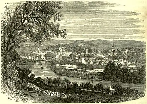 NORWICH, a town and city, and one of the county seats of New London co., Connecticut, situated at the head of the Thames river, 15 m. from Long Island sound, and 35 m. S. E. of Hartford; pop. in 1860, 14,048; in 1870, 16,653. The town and city are not coëxtensive. The principal portion of the city lies upon the sides and summit of the eminence that rises between the Yantic and Shetucket rivers, which here unite to form the Thames. The business portion is at the base near the water, in the locality formerly known as Chelsea Landing, while the residences are mostly upon the plateau that extends N. from the brow of the hill. The houses are generally white, and, rising in terraces one above the other, can be seen from a considerable distance down the river, whose elevated banks lend additional attraction to the view. The principal public building is the court house, used for town, city, and county purposes. There is a cemetery tastefully laid out, and in the park a monument has been erected to the soldiers of the civil war. West of the Yantic is a portion of the city known as the West Side or West Chelsea. Greeneville, in the N. E. part of the city, on the right bank of the Shetucket, contains one of the largest paper mills in New England. The town extends N. W. of the city, in a pleasant valley surrounded by hills. At the falls of the Yantic, about 1 m. from its entrance into the Thames, the river is compressed into a narrow channel, and rushes over a rocky bed having a perpendicular descent of about 50 ft. The “Falls” in this vicinity is an active manufacturing village.