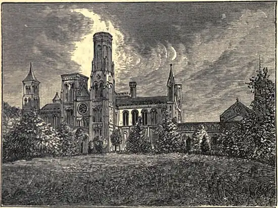 SMITHSONIAN INSTITUTION, a scientific establishment in Washington, D. C., organized by act of congress in August, 1846, to carry into effect the provisions of the will of James Smithson. The condition on which the bequest was to take effect in favor of the United States having occurred in 1835, by the death of a nephew of the testator without issue, the Hon. Richard Rush was sent to London to prosecute the claim. On Sept. 1, 1838, he deposited in the United States mint the proceeds in English sovereigns, which amounted to $515,169. Suggestions were invited by the president as to the mode of disposing of the fund, which was in the mean time lent to Arkansas and other states to aid in internal improvements. The first section of the act of 1846, passed after several years' discussion of conflicting plans, creates an “establishment” for the increase and diffusion of knowledge among men, to consist of the president and vice president of the United States, the several members of the cabinet, the chief justice of the supreme court, the commissioner of the patent office, and the mayor of Washington, during their respective terms of office, with such other persons as these may elect honorary members of the institution. The second declares the original fund to be lent in perpetuity to the treasury of the United States at 6 per cent., payable semi-annually; appropriates the interest from Sept. 1, 1838, when the money was received, to July 1, 1846, amounting to $242,129, or so much thereof as might be necessary, for the erection of buildings, and other current incidental expenses; and provides that all expenditures and appropriations shall in future be made exclusively from the accruing interest and not from the principal of the fund. By the third section a board of managers is constituted, under the name of “Regents of the Smithsonian Institution,” to be composed of the vice president of the United States, the chief justice, the mayor of Washington, three members of the senate and three of the house of representatives, to be selected by the president and speaker thereof, with six other persons not members of congress, of whom two shall be resident in the city of Washington and the other four inhabitants of the United States, but no two of the same state. This board is required to elect one of its members as presiding officer, to be styled the chancellor of the institution, and also a suitable person to act as secretary both of the institution and the board. To this body is assigned the duty of a general superintendence, and of making an annual report to congress on the operations, expenditures, and condition of the institution. Sections 4, 5, and 6 assign a location and give power for “the erection of a suitable building of sufficient size, with apartments for the reception and arrangement upon a liberal scale of objects of natural history, including a geological and mineralogical cabinet; also a chemical laboratory, a library, a gallery of art, and the necessary lecture rooms;” and provision is made that all objects of art, natural history, &c., belonging to the United States, with such as may be collected from whatever source by the institution itself, shall be deposited in the building. Section 7 devolves on the secretary the charge of the building and property, and the duties of librarian and keeper of the museum, with the power of employing assistants, subject to the approval and removable at the discretion of the regents. Section 8 defines the visitorial relations of the members of the establishment toward the board of regents, and also limits the expenditure for the library. Section 9 authorizes the managers to dispose of such portion of the interest of the fund as the act has not otherwise appropriated, in such manner as they shall deem best suited for the promotion of the purpose of the testator. On this clause the present organization of the institution principally depends. In accordance with the requirements of this act of congress, a spacious building was erected, making provision for a library, museum, gallery of art, and lectures. The entire cost of the building, improvement of the grounds, &c., has been upward of $500,000. A library was begun, consisting chiefly of transactions and proceedings of learned societies obtained by exchange, and of other works by purchase necessary for general use, which has become unequalled in this country as a resource for scientific reference. The museum, enriched by the fruits of governmental expeditions and the contributions of individual explorers under the direction of the institution, has attained a magnitude and completeness seldom surpassed in collections for the illustration of natural science. A gallery of art was commenced, consisting principally of Indian portraits, engravings, and such articles as were presented to the institution by foreign governments; and lectures, chiefly on scientific subjects, were delivered up to 1865, when they were abandoned in consequence of a fire which destroyed the lecture room and afforded an opportunity of making important changes in the operations of the institution. The library was incorporated with that of congress, making the latter at once the largest in the United States, to which the institution annually contributes a copy of the transactions and proceedings of each of the principal societies of the world, and in return receives the use of all the books in the collection. Mr. W. W. Corcoran of Washington having founded a free public gallery of art, the institution has deposited in it its art collection. This is in accordance with the general plan of coöperating with the different establishments in the city of Washington, the institution having transferred to the department of agriculture its botanical collections, and to the army medical museum all specimens relating to medicine and anatomy, while it receives in return from these departments everything which relates to natural history and 