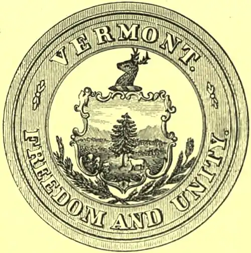 VERMONT, so called from its principal range of mountains (Fr. verd or vert, green, and mont, mountain), one of the New England states of the American Union, and the first admitted under the federal constitution. It lies between lat. 42° 44' and 45° 3' N., and lon. 71° 38' and 73° 25' W., and is bounded N. by Canada, E. by New Hampshire, S. by Massachusetts, and W. by New York and Lake Champlain, of which nearly two thirds lies within the state; area, 10,212 sq. m.