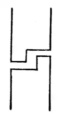 He examined the opening through which his lunch had been thrust, and found that it was like the hatches which were fitted in the cells of the Carthusian monasteries—a double rectangular return in the thickness of the wall, which permitted any one outside to pass anything inside without being seen, thus:—