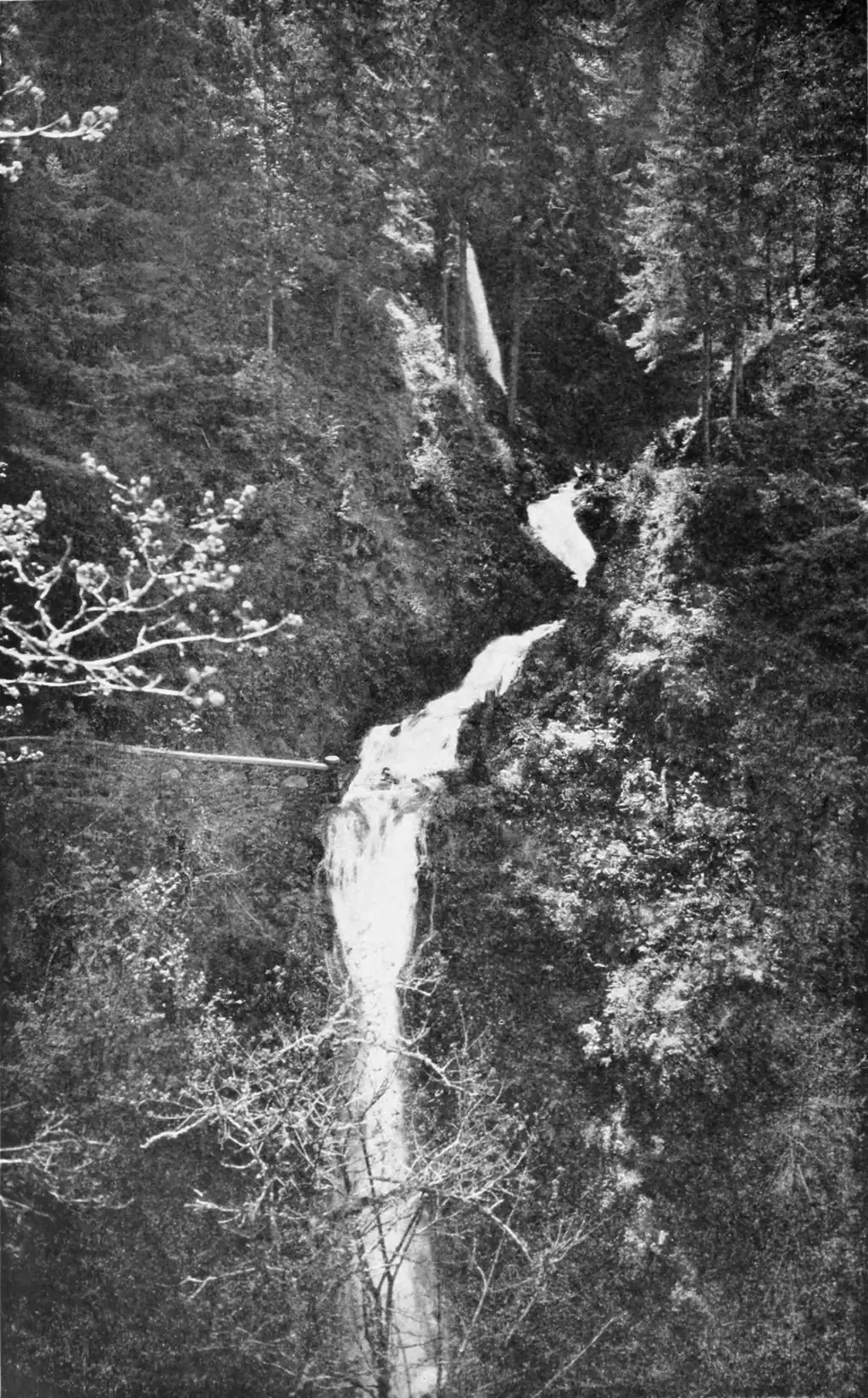 Wahkeena means "most beautiful" in the Indian tongue. Of all the water falls seen from the great Highway none is more beautiful. Mr. S. Benson purchased more than three humlrcd acres, embracing Wahkeena Falls and gave it to the public for a