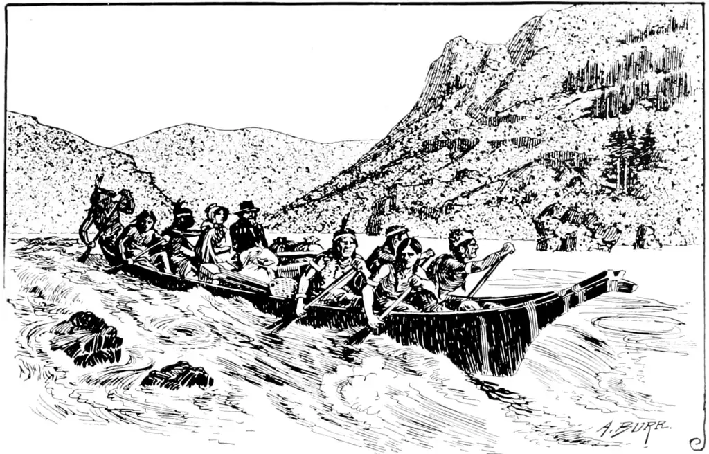 "After paying the Indians for their assistance, which was a twist of tobacco about the length of a finger to each, we reloaded, went on board, sailed about two miles, and stopped for breakfast. This was done to get away from a throng of Indians. Many followed us, however, to assist in making another portage, three miles below this.