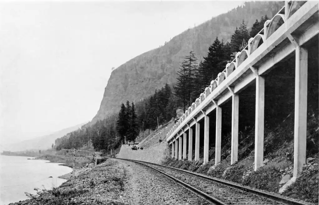 At this time the State of Oregon had no Highway Commission, and the work was undertaken by the authorities of Hood River County, who used the State prisoners; the expense being met from the funds provided by Mr. Benson.