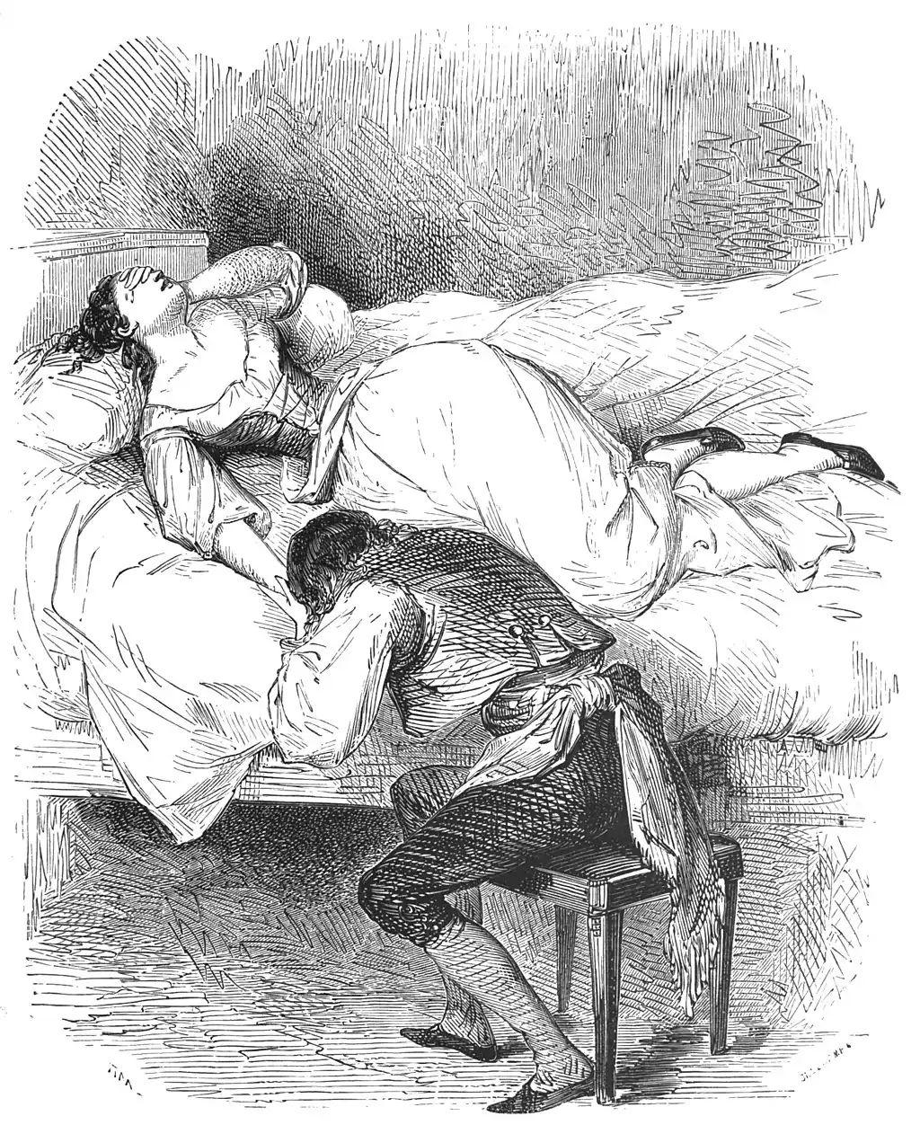 Mercédès had met Fernand at the corner of the Rue de la Loge; she had returned to the Catalans, and had despairingly cast herself on her couch. Feruand, kneeling by her side, took her hand and covered it with kisses that Mercédѐs did not even feel. She passed the night thus; the lamp died out for want of oil, she saw neither light nor dark, and the day returned without her noticing it. Grief had made her blind to all but one object — that was Edmond.