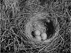 Nest of the Pied Honey-eater (Certhionyx variagatus).